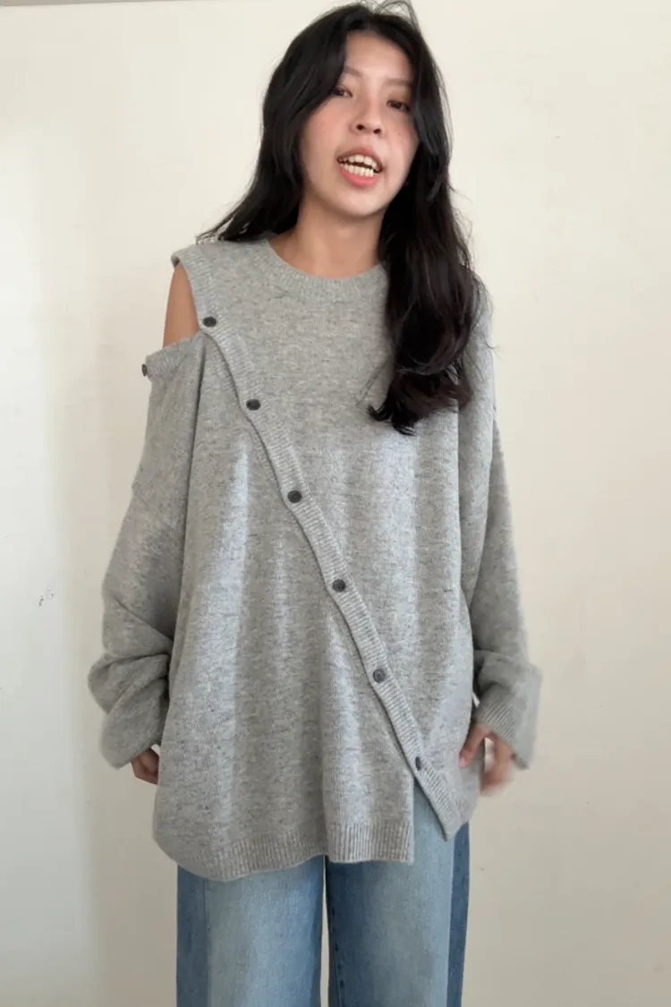 我的菜!寬寬鬆鬆扣子毛衣