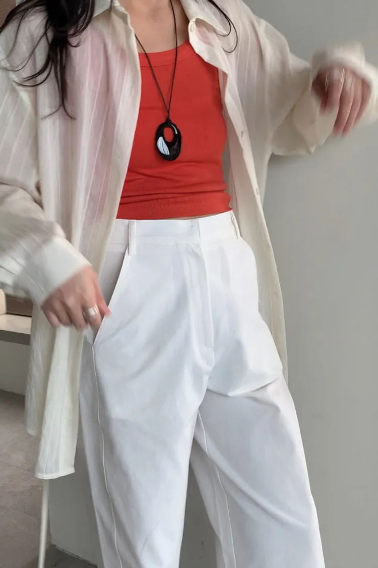 夏日必備!2色!社長白褲